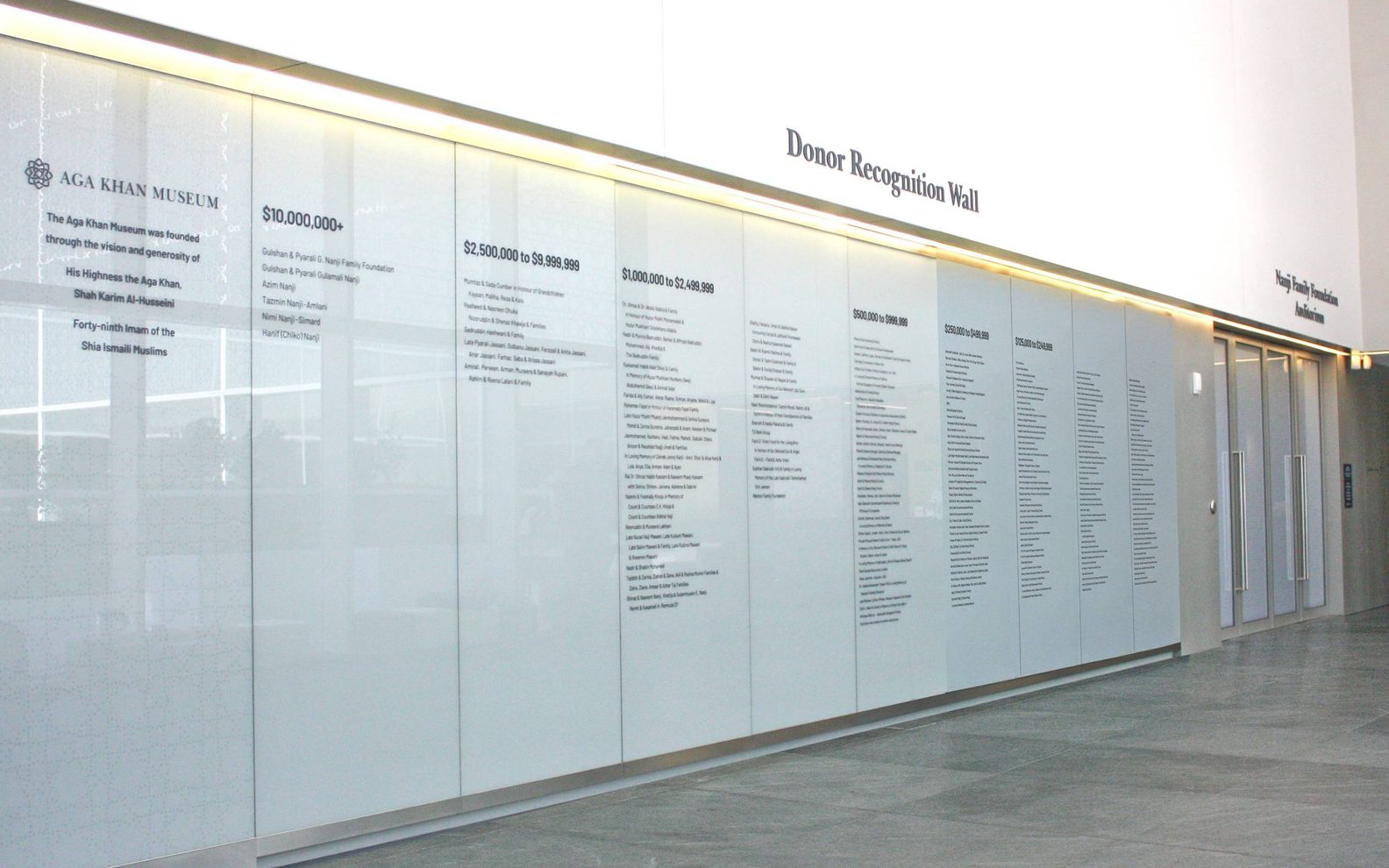 - Yasmin and Fatehally Khoja, in Memory of Count and Countess E.K. Khoja and Count and