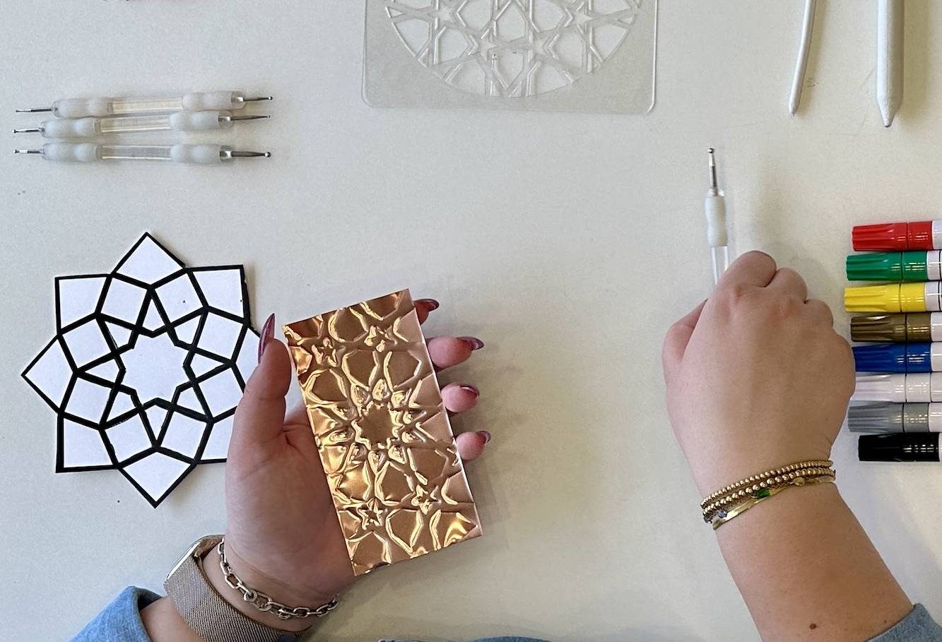 Explore the art of metal embossing in this hands-on workshop. Discover the basics of this technique, draw inspiration from the unique patterns in our Museum Collections, and experiment with your own designs. By the end of the workshop, you will create a beautifully embossed metal tile to take home. Suitable for all skill levels.