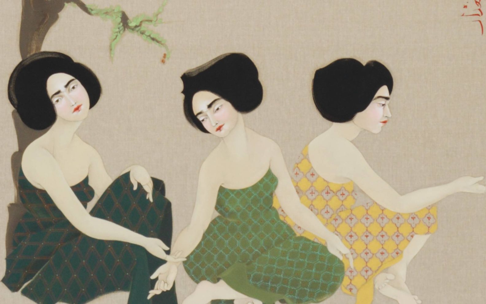Drawing inspiration from art historical references like Japanese hanging scrolls and illustrated Iraqi manuscripts such as the Maqamat of al-Hariri (d.1122), Kahraman creates a powerful meditation on memory, identity, and cultural belonging.