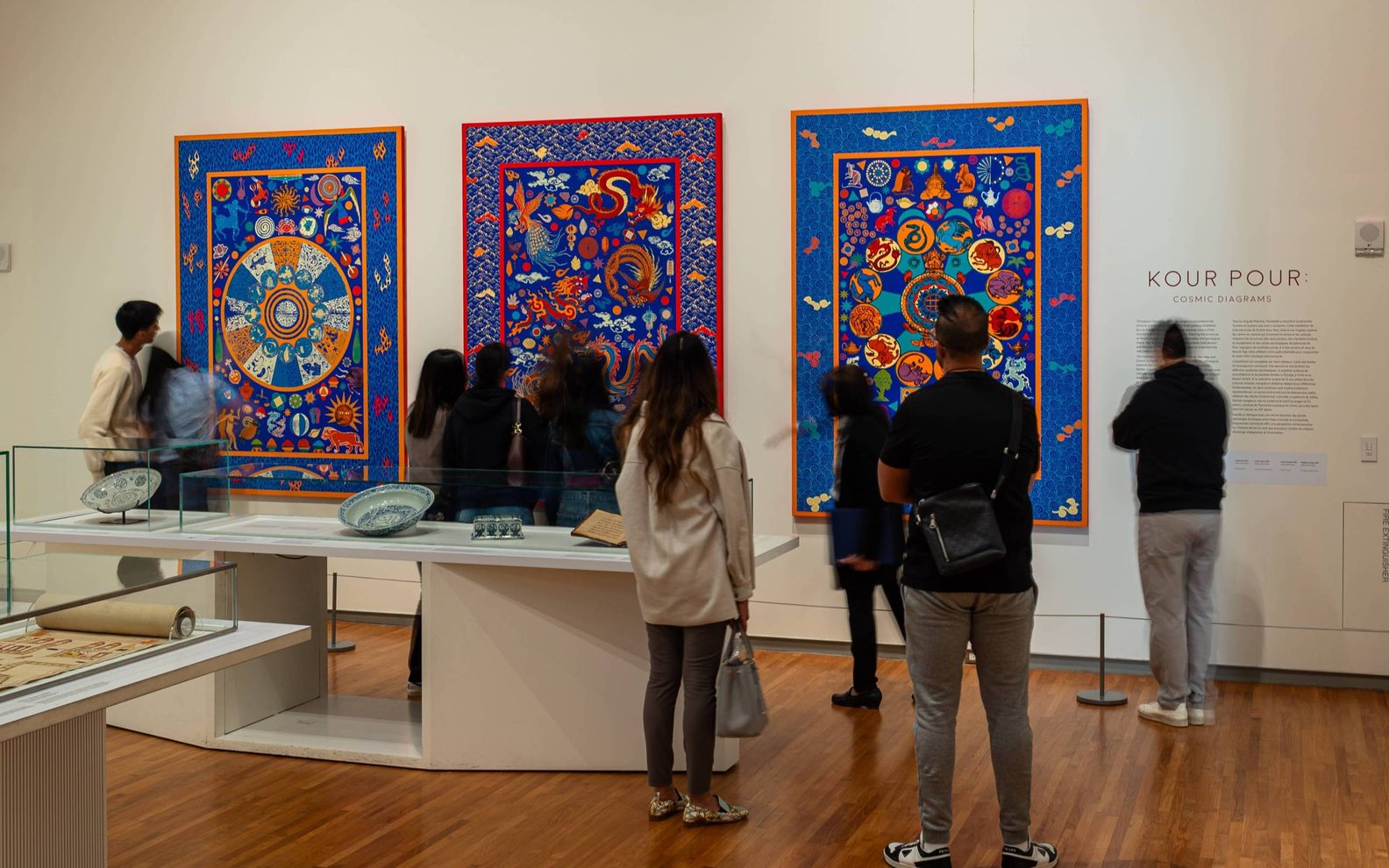 On display in the Museum Collections Gallery, Kour Pour: Cosmic Diagrams showcases three monumental paintings that explore the kaleidoscopic ways in which different cultures have envisioned the cosmos. Inspired by celestial and terrestrial designs from diverse artistic traditions, and blending elements of Persian carpets, mandalas, and zodiacal charts, these works reveal a shared quest to understand a vast, interconnected cosmic order.