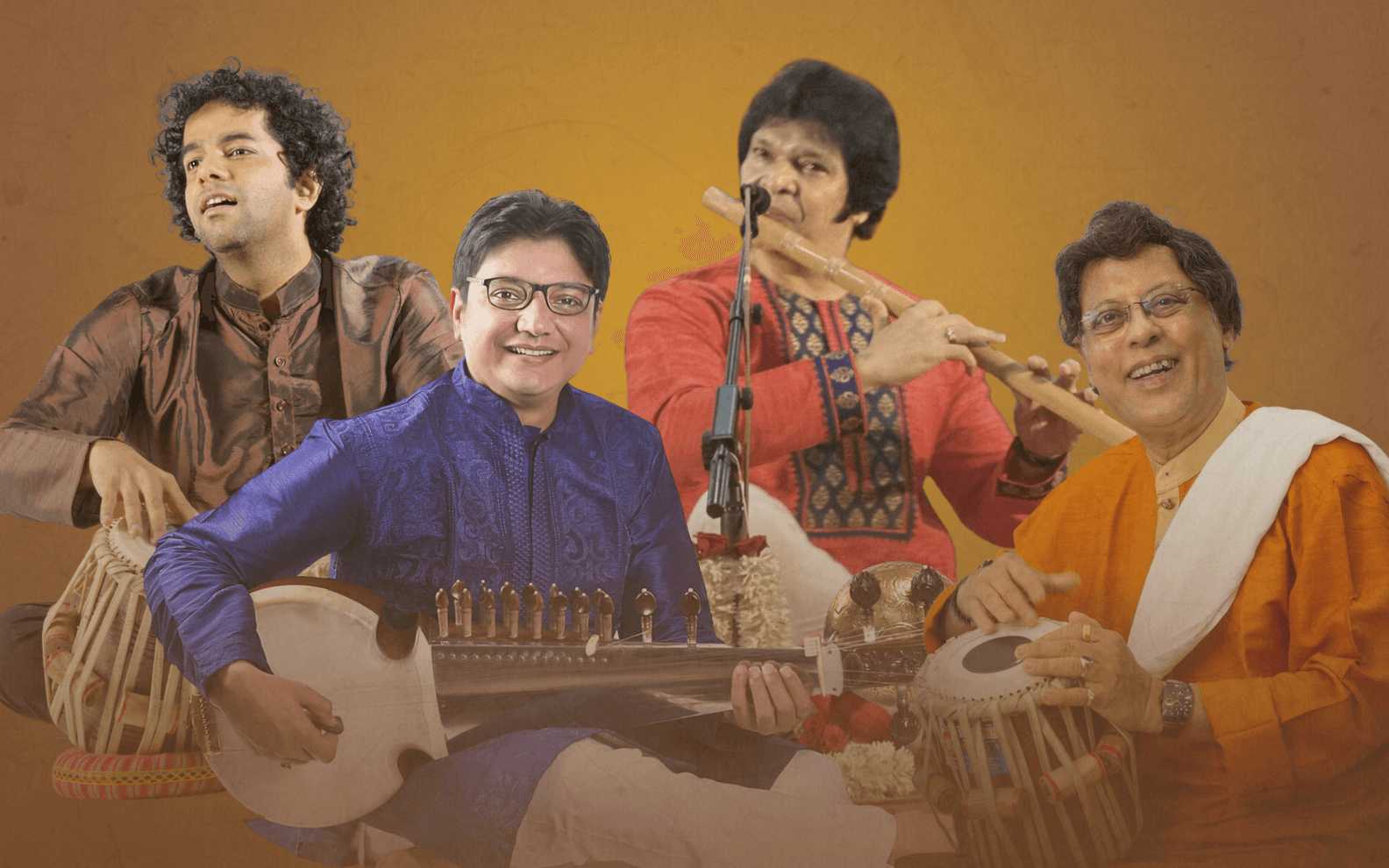 The evening opens with legendary tabla maestro Pandit Anindo Chatterjee in collaboration with sarode virtuoso Atish Mukhopadhyay, presenting a deeply and expressive musical exchange. Following this performance the acclaimed flautist Rakesh Chaurasia joins tabla prodigy Amit Kavthekar, extending the journey with intuitive fluid interplay that builds on an already rich tapestry.